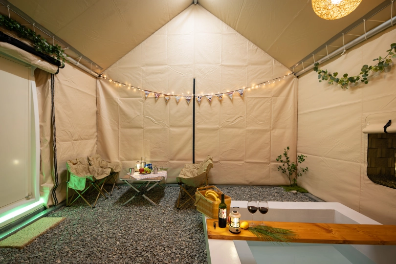자쿠지를 즐길수 있는 텐트로 이루어 졌으며