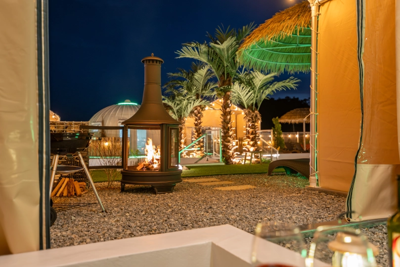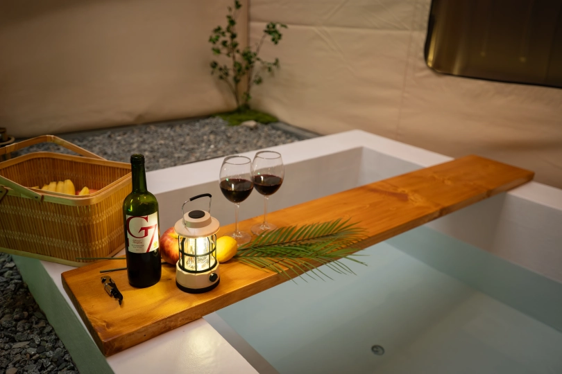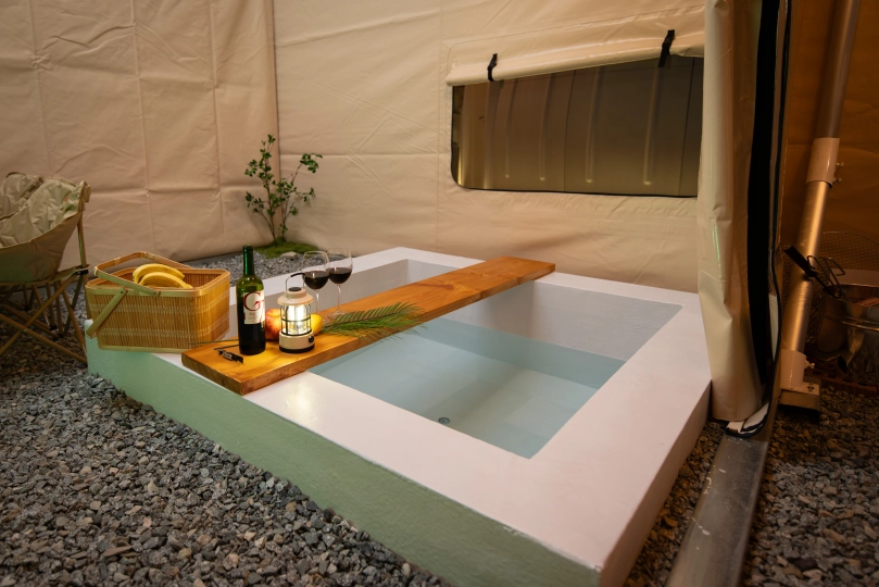 자쿠지를 즐길수 있는 텐트로 이루어 졌으며